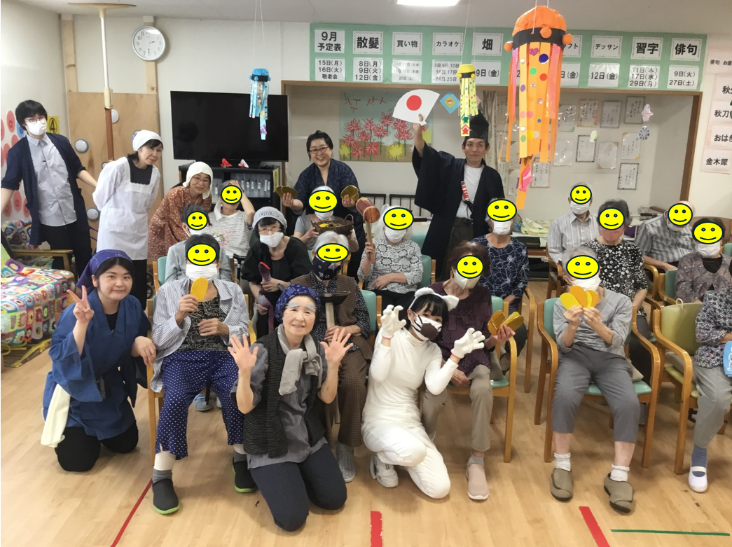 というわけで、デイサービスセンター伊勢マリンホーム旭が丘では、敬老の日という事で9月15日16日と職員劇『花咲かじいさん』を利用者様にご披露いたしました。