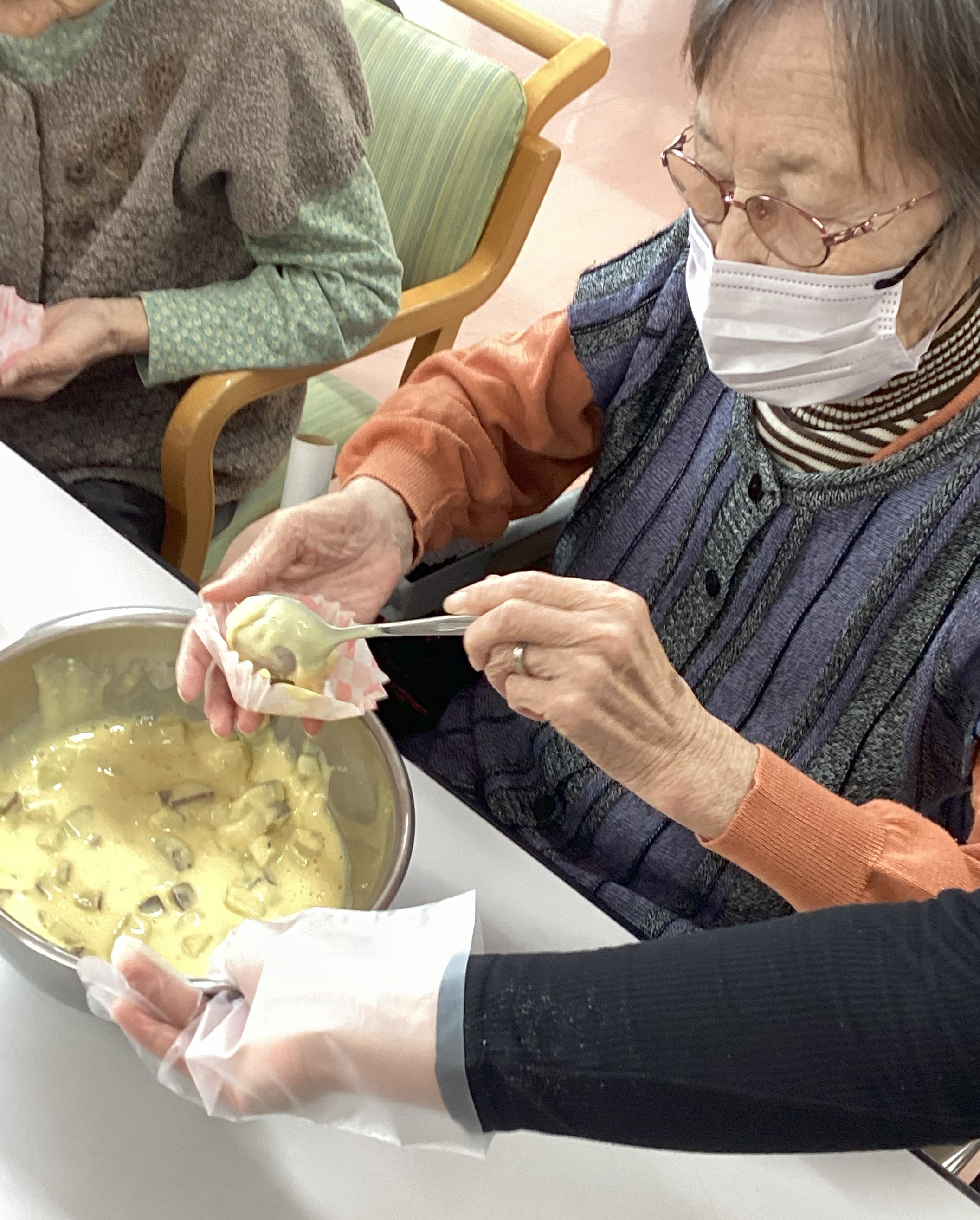 !」と言うことで、今回は「さつまいものカップケーキ作り」に挑戦しました。
