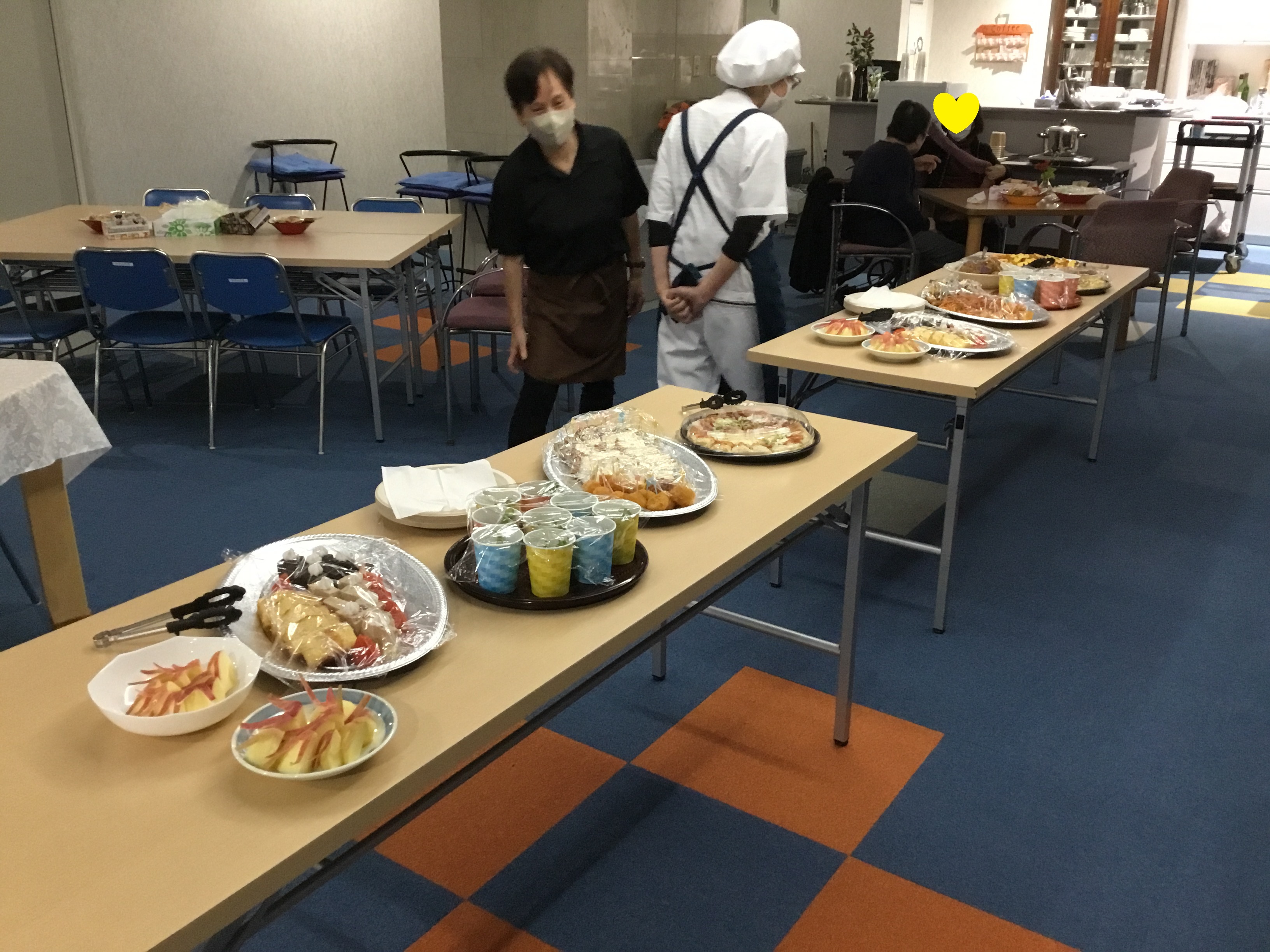 談笑しながら思い思いに料理を選び、アットホームなパーティー会場のようです?(決して群がっている…とは言わないでください。)
