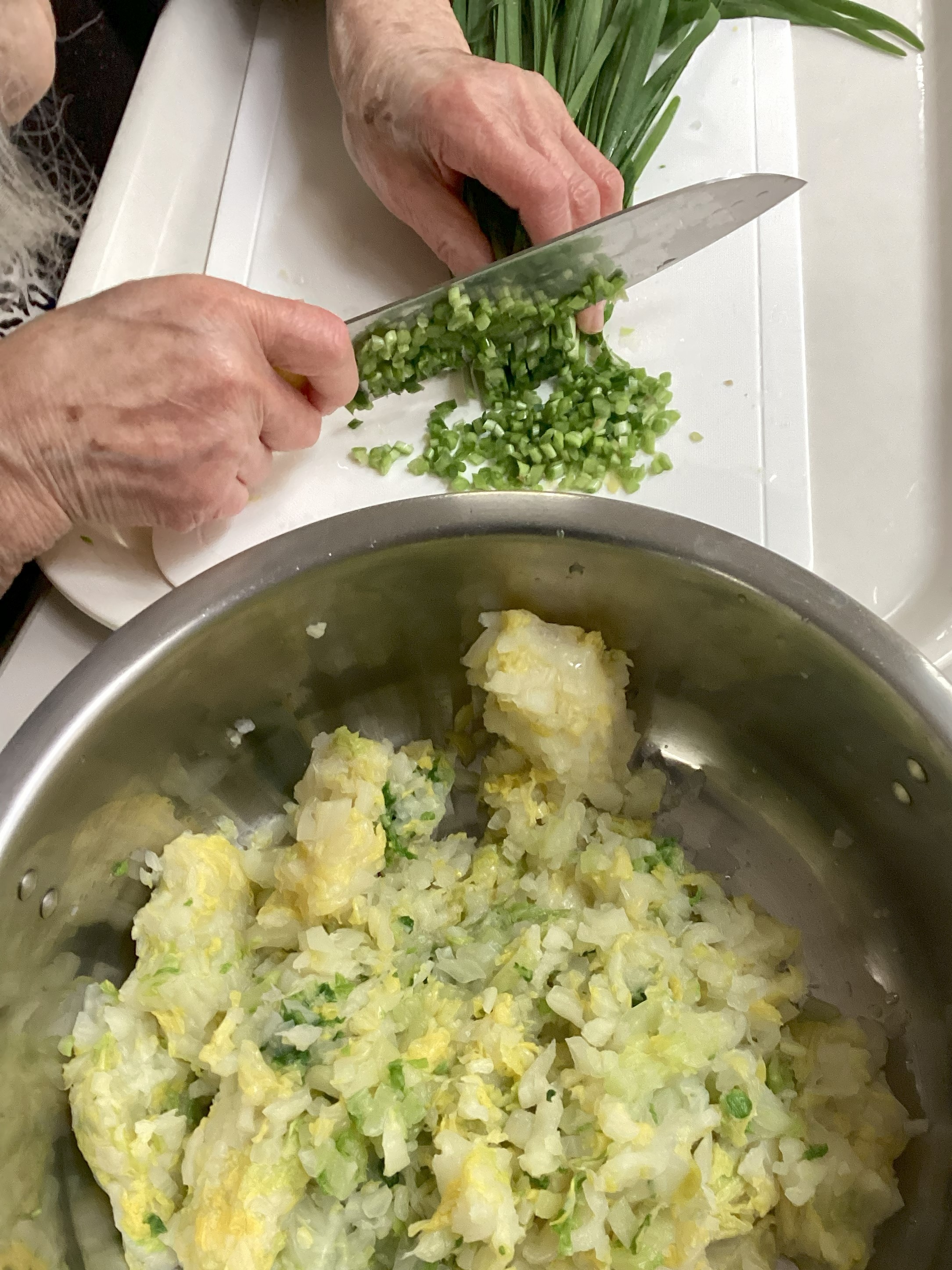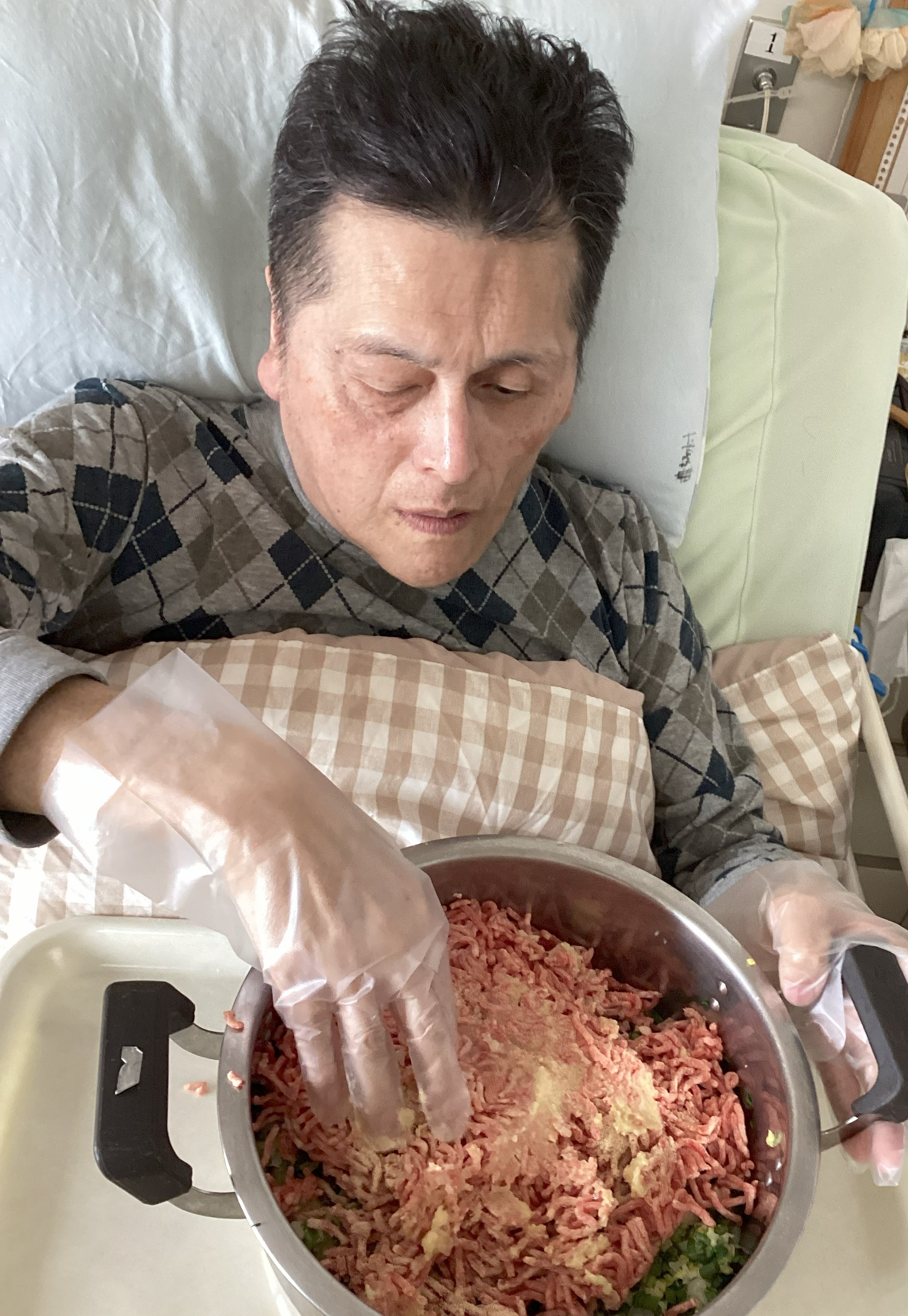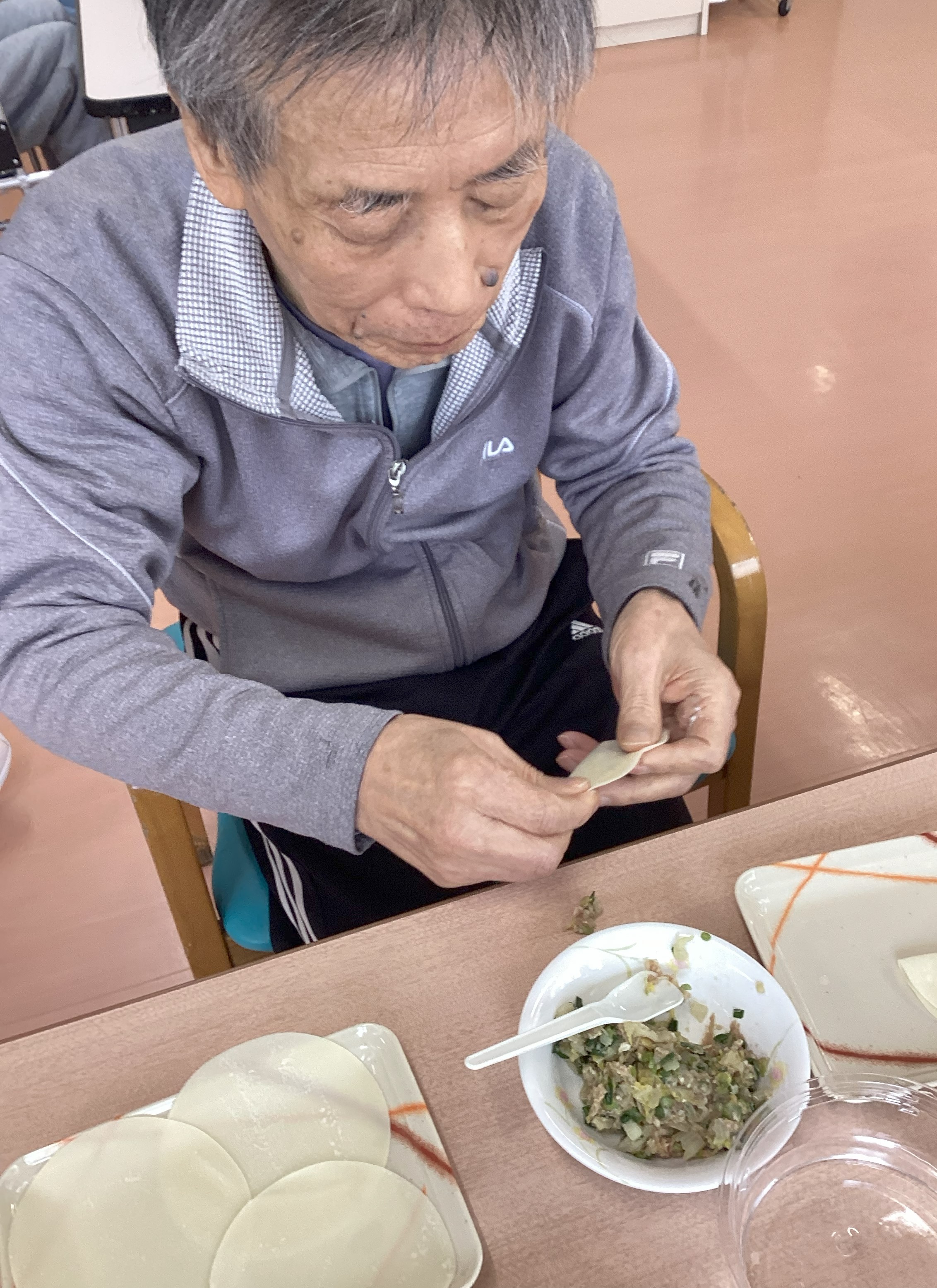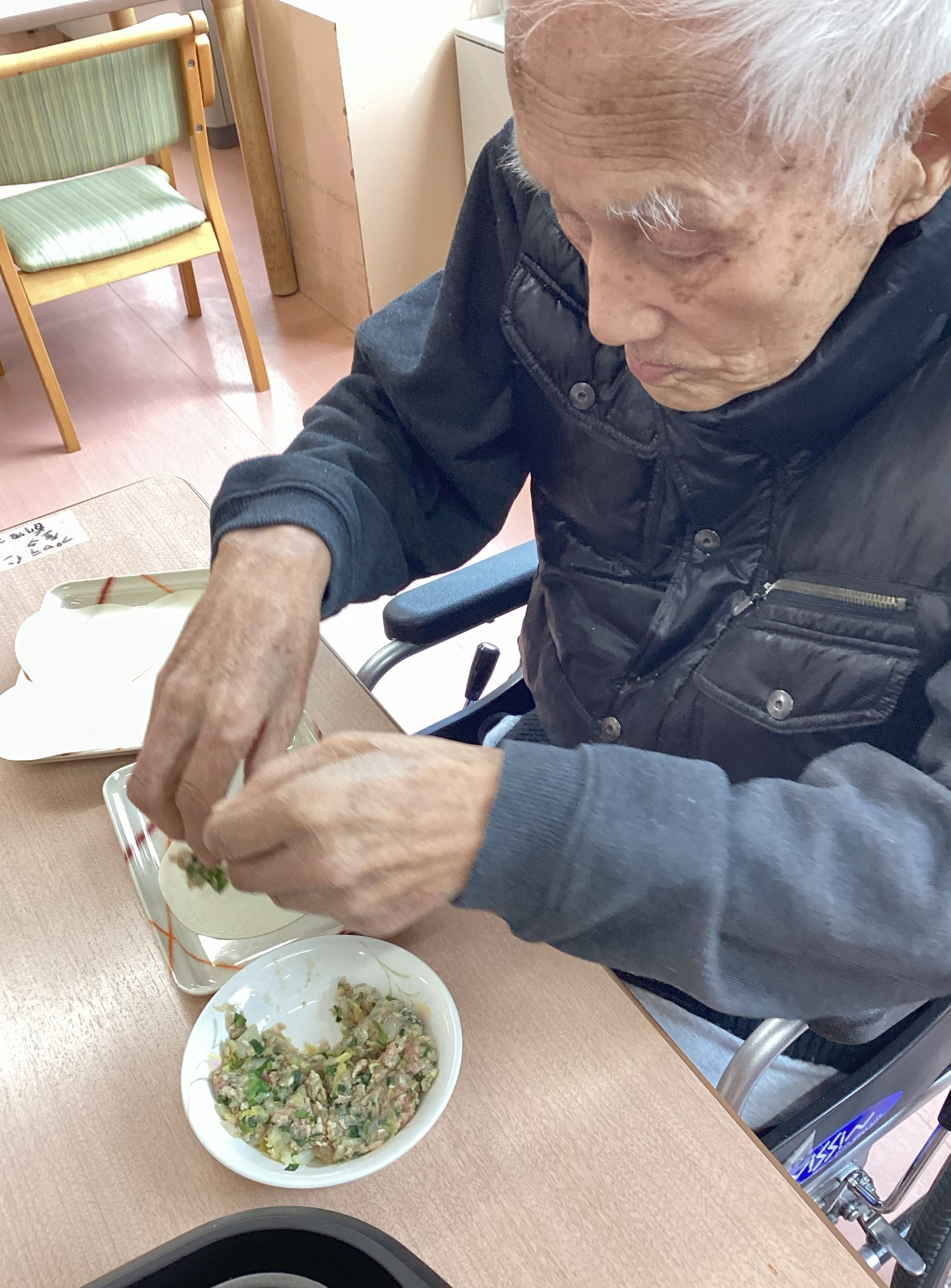 餃子のタネ作りから、皆さんで力を合わせてスタートです。