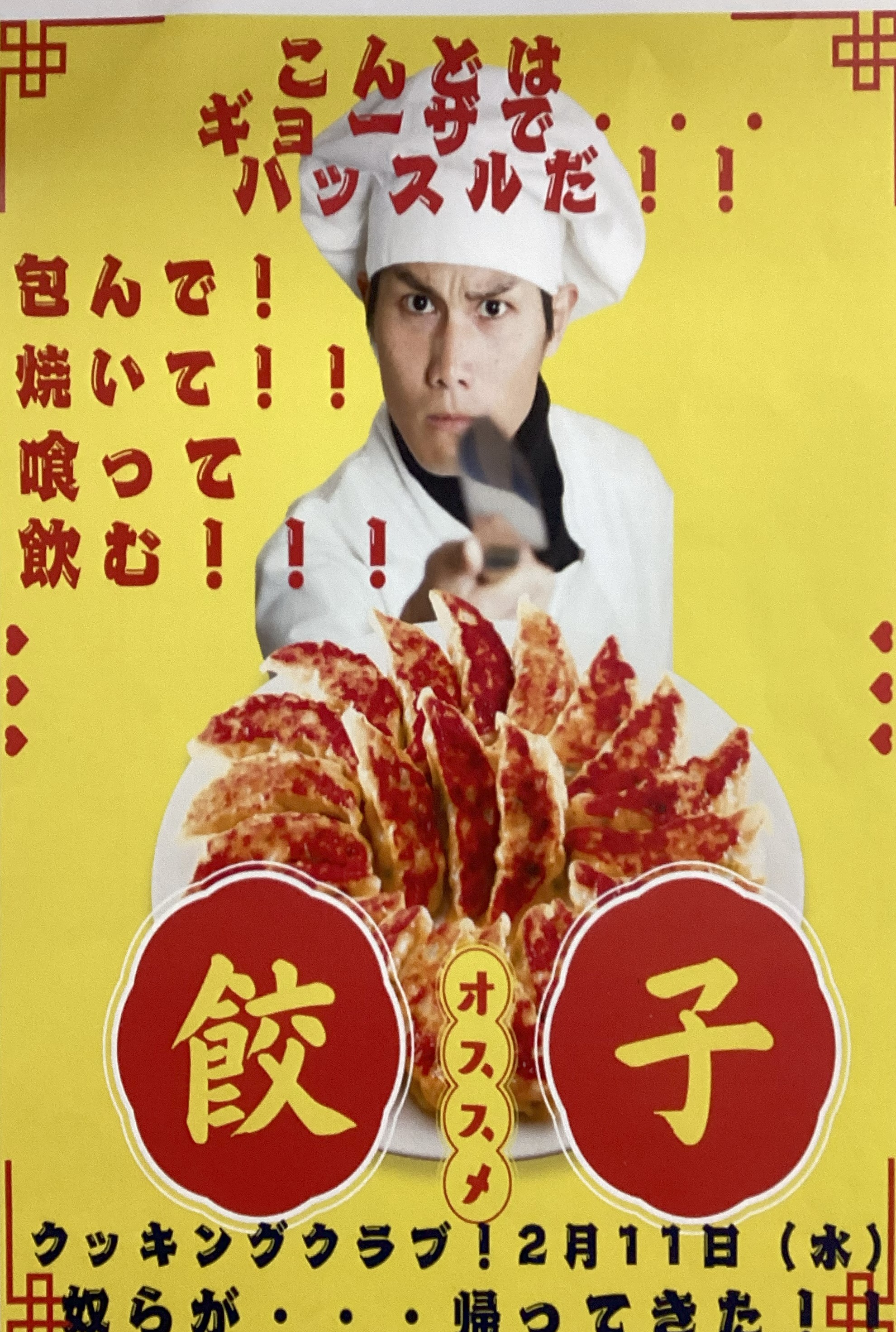 怪しげ(?)なポスターが館内のあちこちに貼りだされ、それを目にしたみなさんは「なんやなんや」「次は餃子か?」とドキドキ、ワクワク・・・。